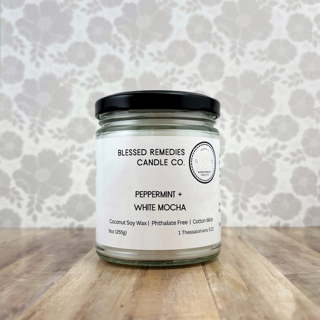 Peppermint + White Mocha 9oz Coconut Soy Candle with Cotton Wick