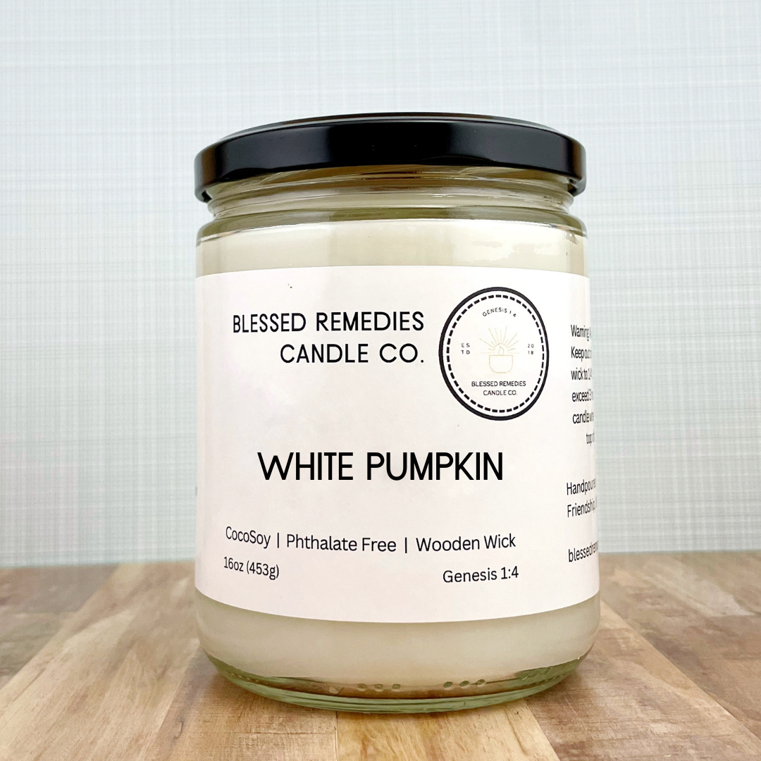 Each Indiana-made candle features our unique blend of all-natural coconut wax and soy wax for a better scent throw and a much longer burn time of 115+ hrs. Hand poured into our 16oz signature glass jar, all of our candles at Blessed Remedies Candle Co. are also made with phthalate-free fragrance and a wooden wick, for a safe, natural and eco-friendly candle experience.